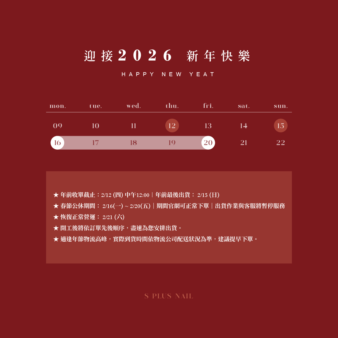春節公告