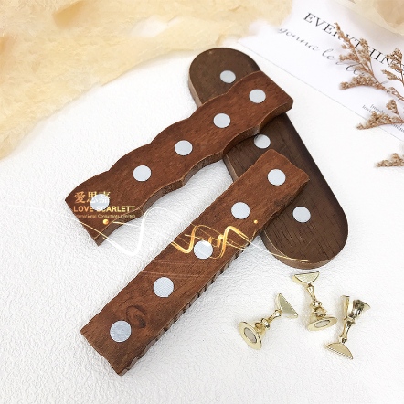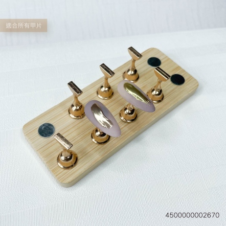 原木胡桃色磁吸甲片座-雙排方形金銀8大2小
